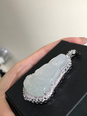 特价:喜询  【高冰正阳绿,大佛】  大件饱满,通透水润,玉质细腻,翠色鲜艳,18k  金奢华钻石镶嵌