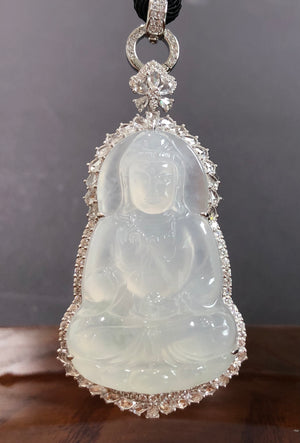 白冰起光观音吊坠,18k真金真钻, 59.4×31.7×10.4mm