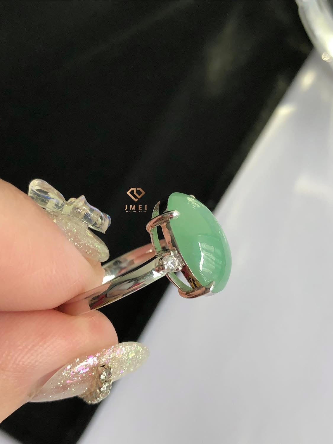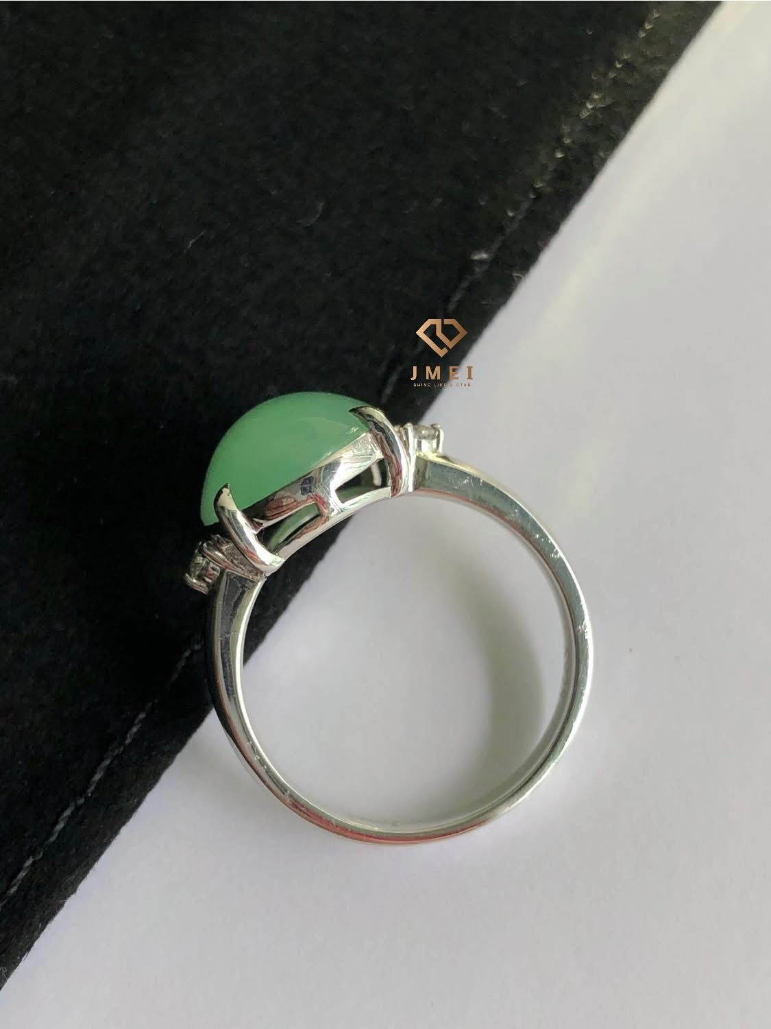 绿色蛋面戒指,925纯银+moissanite 13.6×5.5mm diameter 16.6 #6