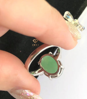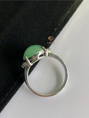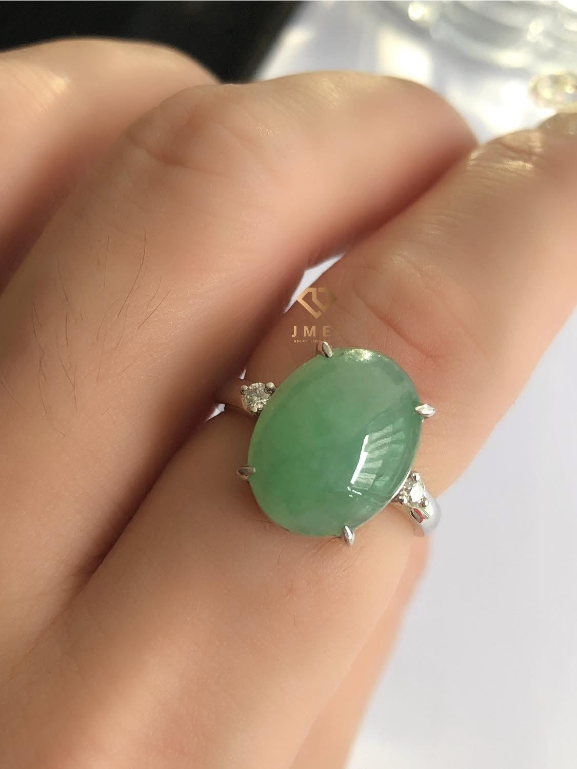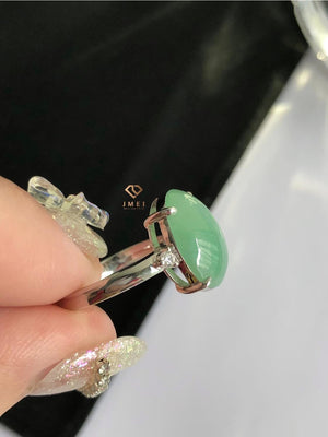 Home 绿色蛋面戒指,925纯银+moissanite 13.6×5.5mm diameter 16.6 #6
