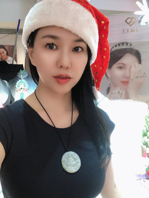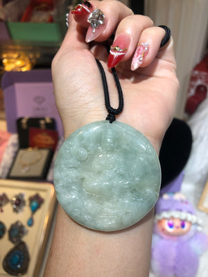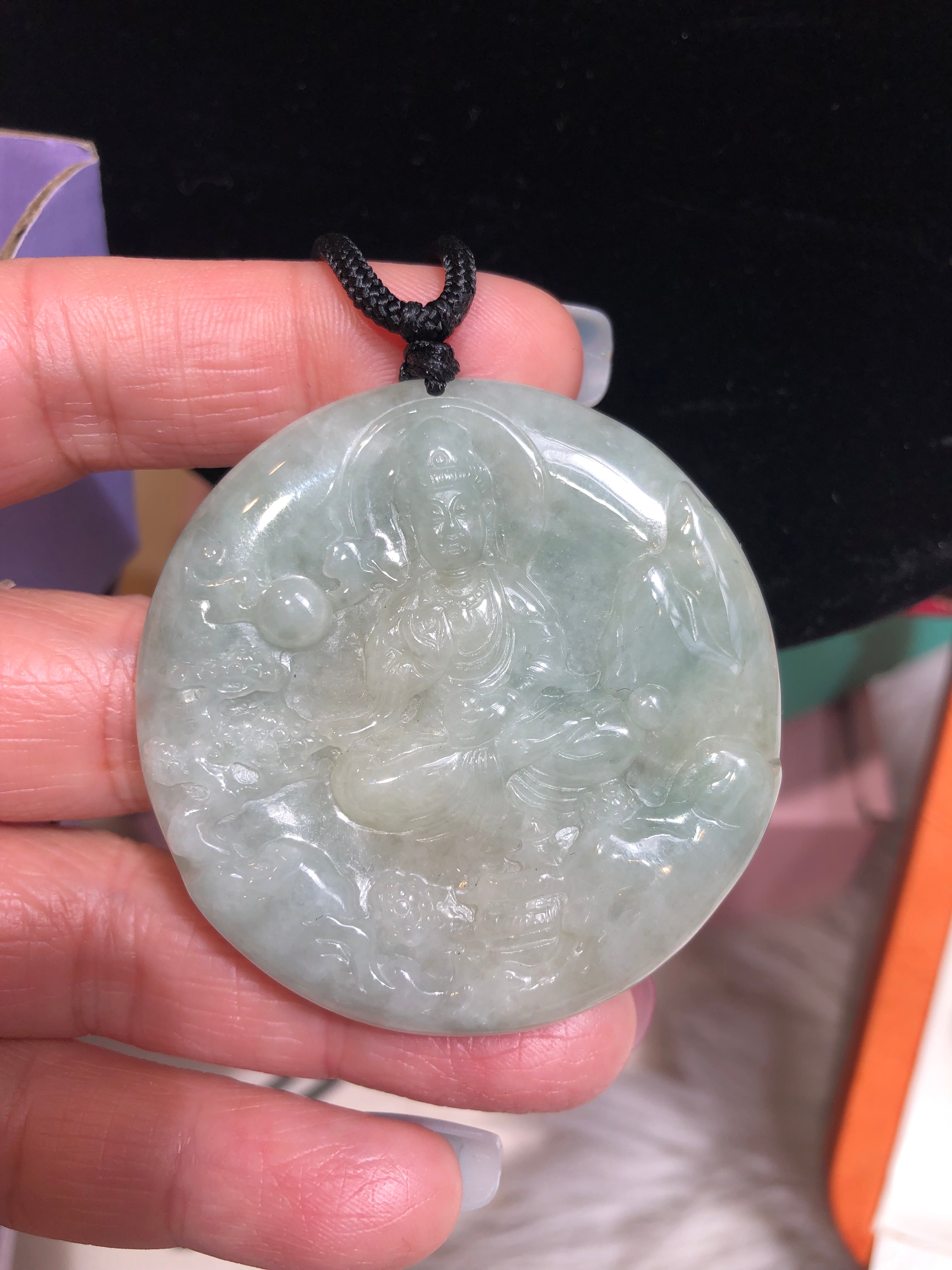 Home 黄加绿圆观音吊坠、48×6.9mm
