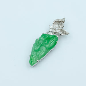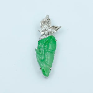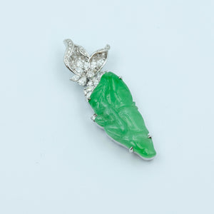 Angel Design Jadeite Pendant Sweet Green 18k White Gold Natural Diamond Inlay