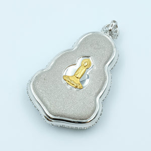 GuanYin Pendant Jadeite Jade Green Grade A 18K White Gold Inlay