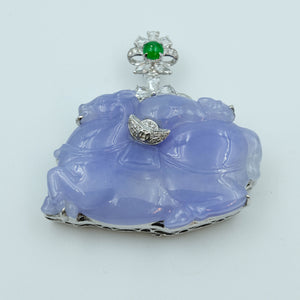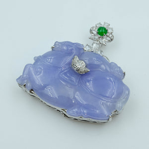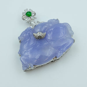 Horse Zodiac Pendant Jadeite Lavender Translucent Grade A 18K White Gold Inlay