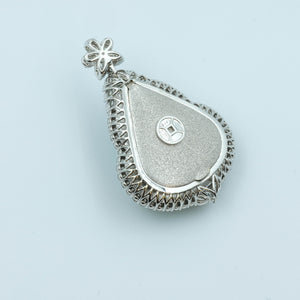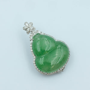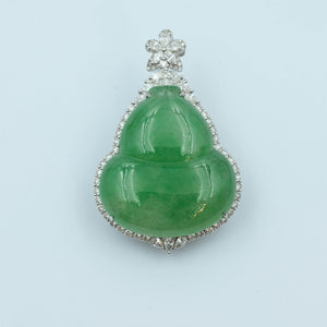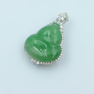 HuLu Pendant Jadeite Jade Green Grade A 18K White Gold with Natural Diamond Inlay