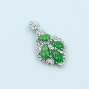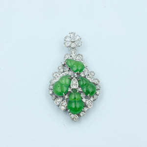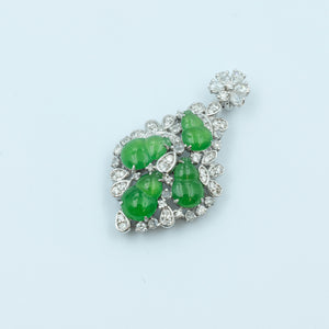 HuLu Pendant Jadeite Jade Green Translucent Grade A 18K White Gold with Diamond Inlay