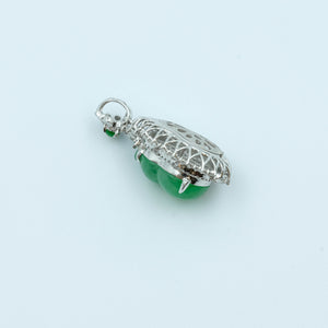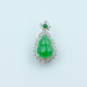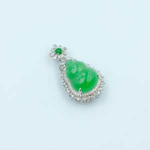 HuLu Pendant Jadeite Jade Vivid Green Translucent Grade A 18K White Gold Inlay