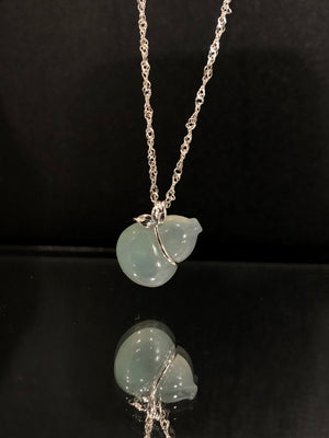 HuLu Pendant Ribbon Design Translucent Light Green 18K White Gold Inlayed Natural Burmese Jadeite Grade A
