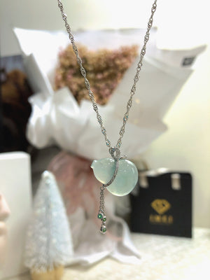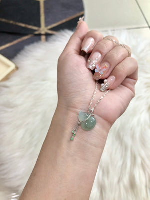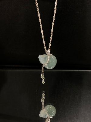 HuLu Pendant Ribbon Design Translucent Light Green 18K White Gold Natural Diamond Emerald Inlayed 16.7x13x5.1mm Natural Burmese Jadeite Grade A