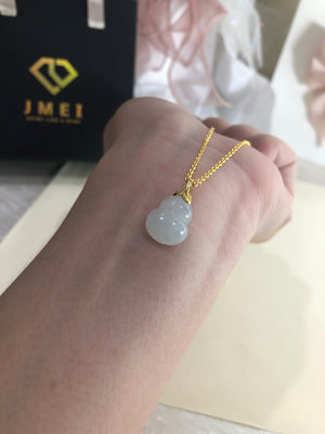 This elegant HuLu Pendant features a white Grade A Burmese jadeite, set in 18K yellow gold. With dimensions of 17.9x10.9x4.7mm, the HuLu design symbolizes health, prosperity, and protection, making it a refined and meaningful addition to any jewelry collection.