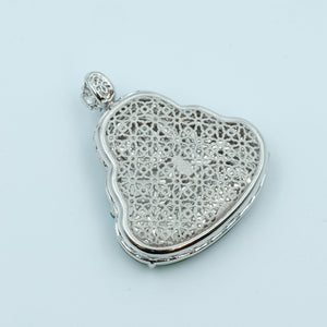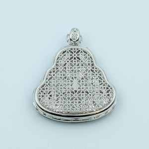 Laughing Buddha Pendant Jadeite Pastel Green Translucent Moss on Snow Grade A 18k White Gold Natural Diamond Inlay
