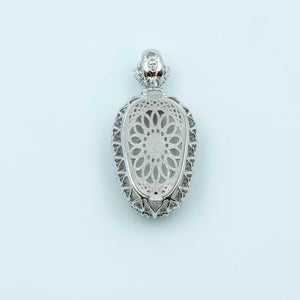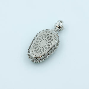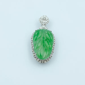 Leaf Pendant Jadeite Jade Apple Green Translucent Grade A 18K White Gold Inlay