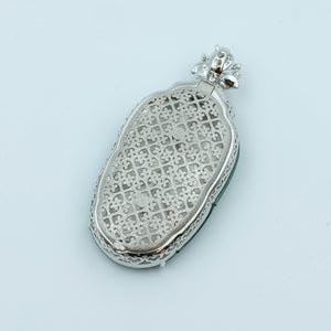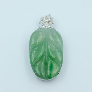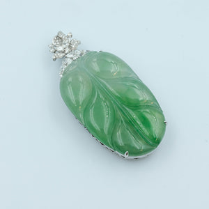 Leaf Pendant Jadeite Jade Green Translucent Grade A 18K White Gold Inlay