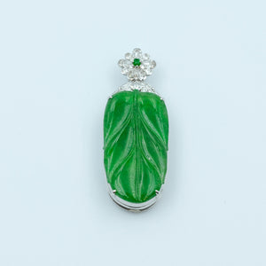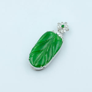 Leaf Pendant Jadeite Jade Imperial Green Grade A 18k White Gold Inlay