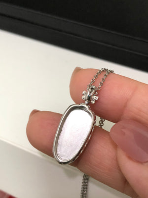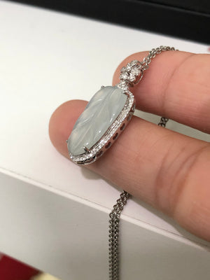 Leaf Pendant White Transparent 18K White Gold Natural Diamond Inlayed 27.4x11.4x5.3mm Natural Burmese Jadeite Grade A