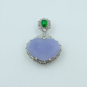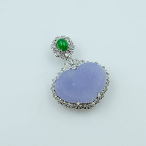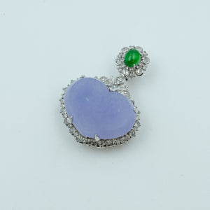 Love Pendant Jadeite Lavender Green Translucent Grade A 18K White Gold Inlay