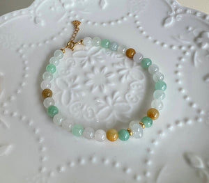 A fun yet graceful jade bracelet that adds a soft pop of color to any outfit—perfect for those who love a mix of tradition and trend.