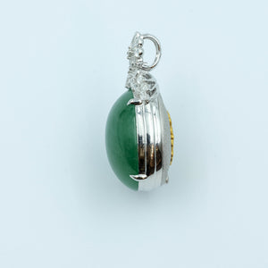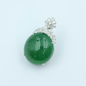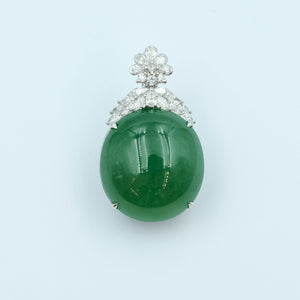 Oval Pendant (2) Jadeite Jade Green Grade A 18K White Gold with natural diamond Inlay