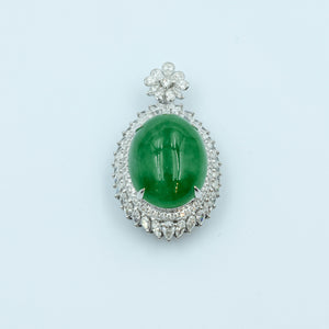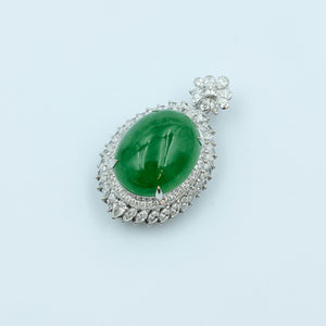 This elegant Oval Pendant showcases a stunning Imperial Green Grade A jadeite, set in 18K white gold. The rich green hue and refined design make this pendant a luxurious and timeless addition to any fine jewelry collection.