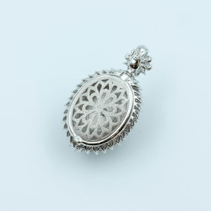 Oval Pendant Jadeite Imperial Green Grade A 18K White Gold Inlay