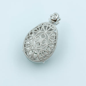 Oval Pendant Jadeite Imperial Green Grade A 18K White Gold Inlay