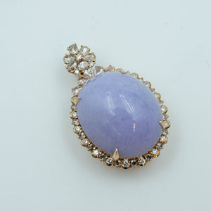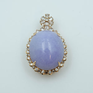 Oval Pendant Jadeite Lavender Grade A 18K Rose Gold with diamond Inlay