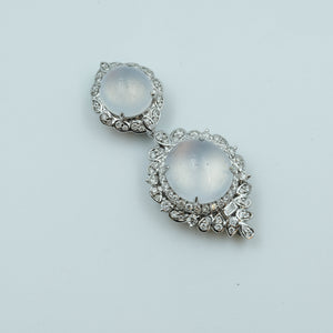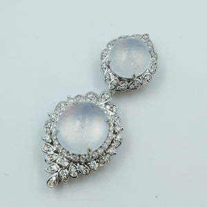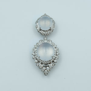 Oval Pendant Jadeite No Color Icy Clear Moss on Snow Grade A 18K White Gold Inlay