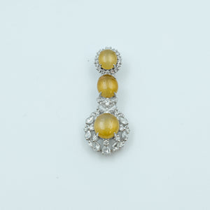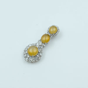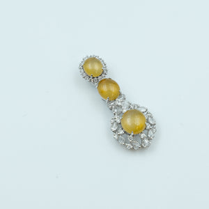 Oval Pendant Jadeite Yellow Icy Clear Grade A 18K White Gold Inlay