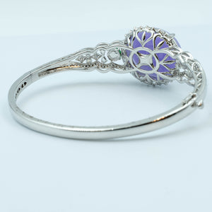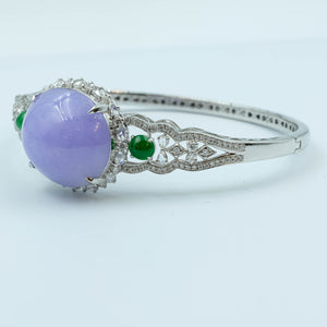 Oval Shape Jadeite Bangle Lavender Green 18k White Gold Natural Diamond Inlay 2