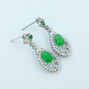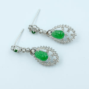 This striking Pi Xiu pendant features vivid green translucent Grade A jadeite jade, symbolizing wealth and protection. Set in 18k white gold with inlay, it combines intricate craftsmanship with timeless elegance, making it a powerful and luxurious accessory.