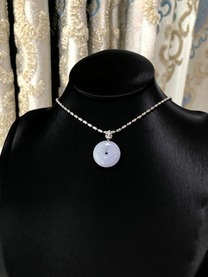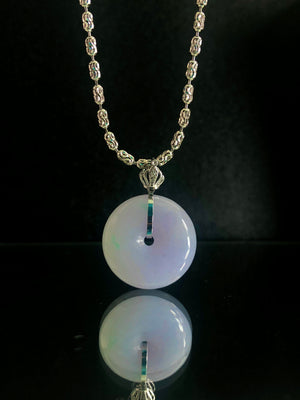 This elegant Ping An Kou Pendant features a stunning blend of purple and green natural Burmese Jadeite, Grade A, accented with a natural diamond crown and inlaid in 18K white gold. With its refined design, it symbolizes peace and luxury, making it a meaningful and sophisticated addition to any jewelry collection. #jade #jadeite #lavederjade
