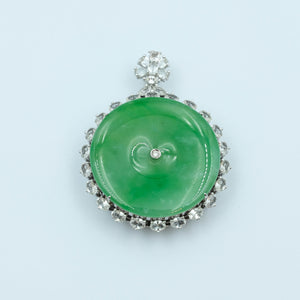 PingAnKou Pendant Jadeite Sweet Jade Green Grade A 18K White Gold Inlay