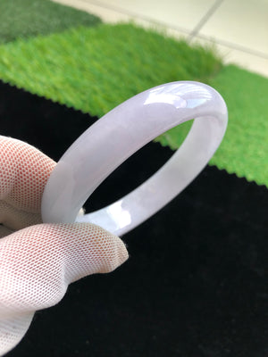Graceful and regal, this Purple Guifei Jade Bangle (#27) embodies elegance in every curve. Carved in the classic Guifei (贵妃) oval shape—favored by imperial consorts for its slender, wrist-hugging form—this piece features a serene lavender hue, symbolizing nobility, calm, and spiritual clarity. The smooth polish enhances its soft translucence, creating a refined bangle with both visual and symbolic depth.