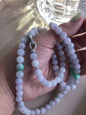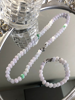 Elegant and versatile, this matching Purple Jade Jewelry Set includes both a necklace and bracelet, handcrafted from smooth 7mm round jadeite beads in a soft lavender hue. The gentle purple tone symbolizes tranquility, wisdom, and grace—making this set a timeless expression of feminine elegance and inner strength.