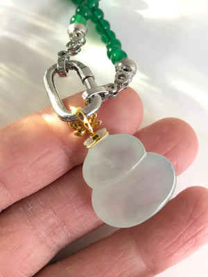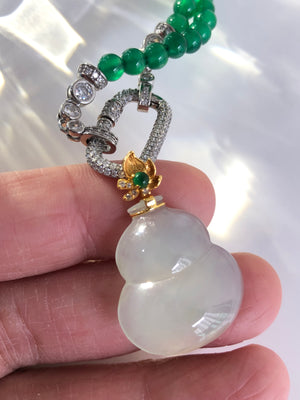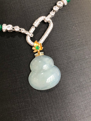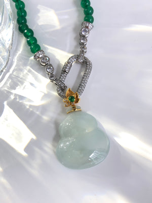 Graceful and full of meaning, this translucent Hulu (葫芦) pendant is beautifully crafted and framed in radiant 18K gold. The Hulu gourd shape, cherished in Chinese culture, symbolizes health, protection, and good fortune. The soft translucency of the gemstone adds a serene glow, making it both a spiritual talisman and a stylish accessory.