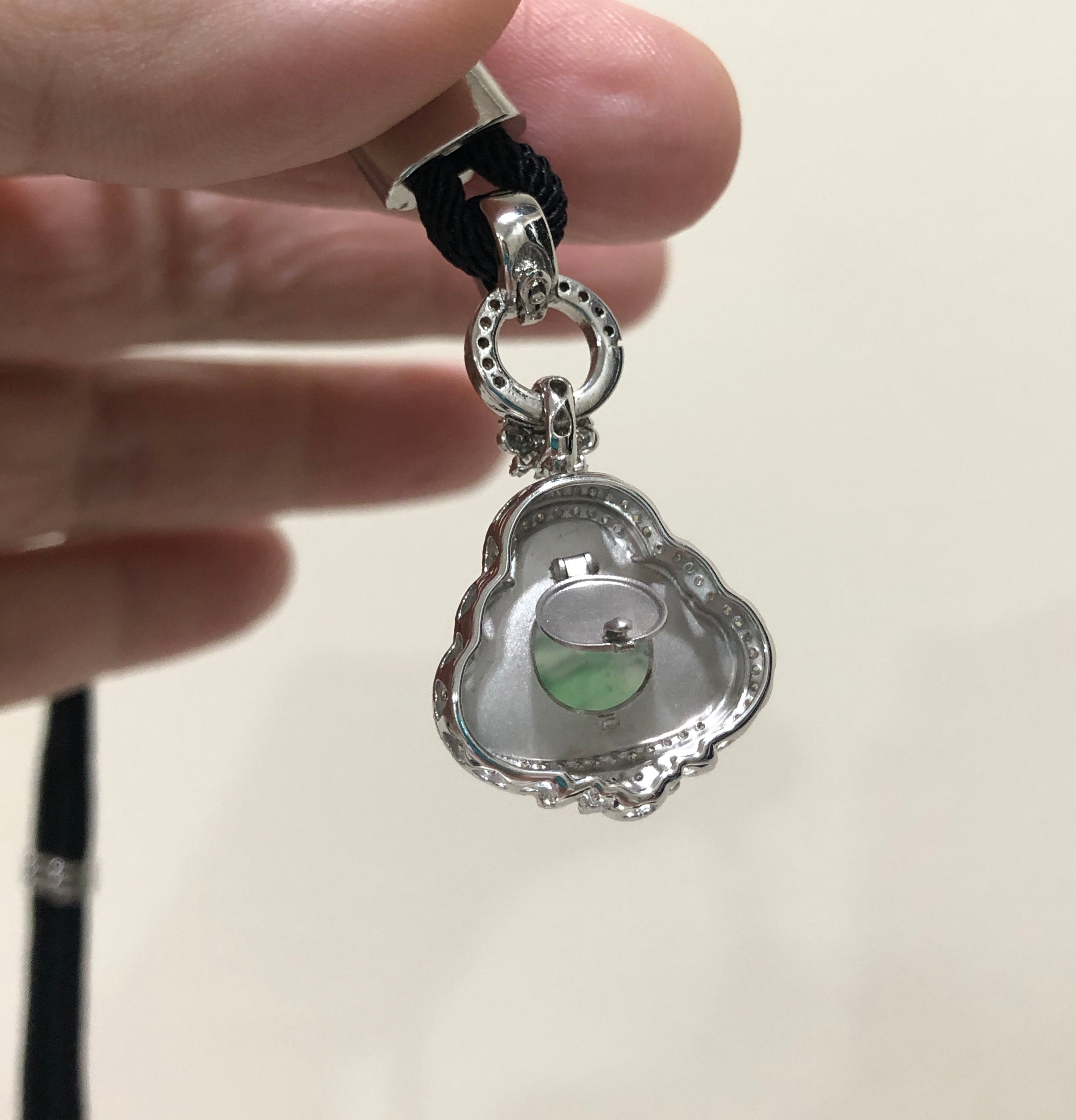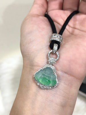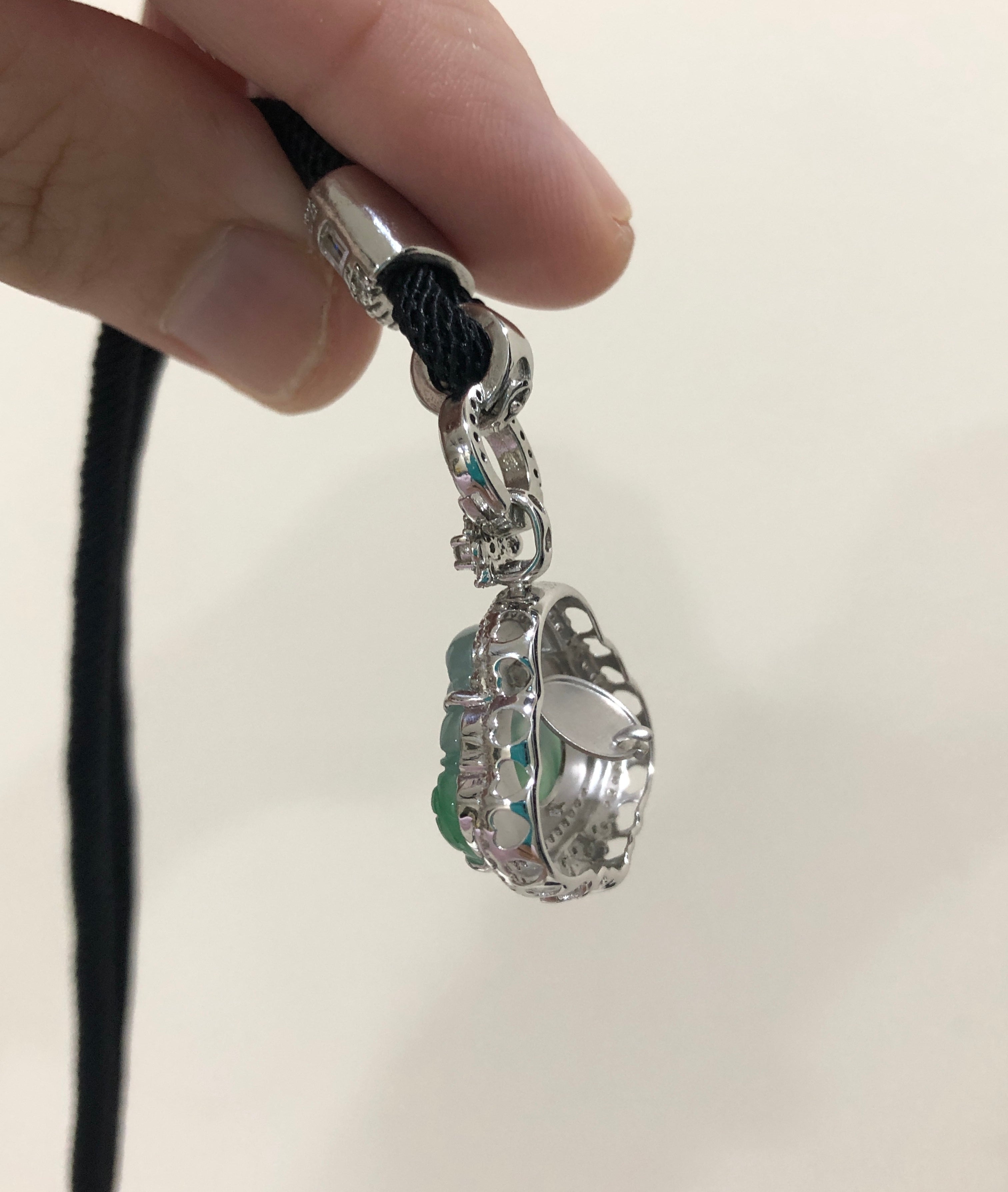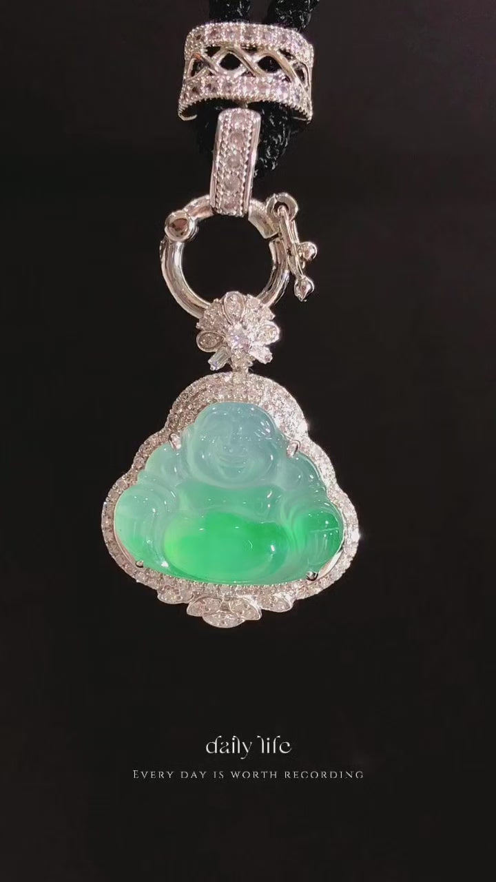 Translucent mint green laughing Buddha pendant 18k gold white with diamond size:24.1×18.4×7mm