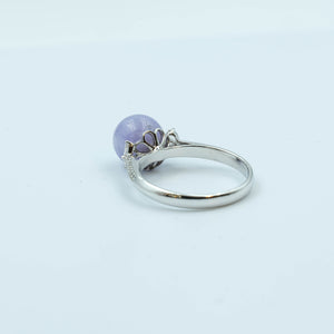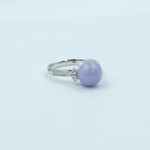 This beautiful white round bead jadeite ring features a unique design, set in 18k white gold with natural diamond inlay. Its elegant simplicity and radiant jadeite make it a perfect piece for those seeking a blend of timeless beauty and luxury.