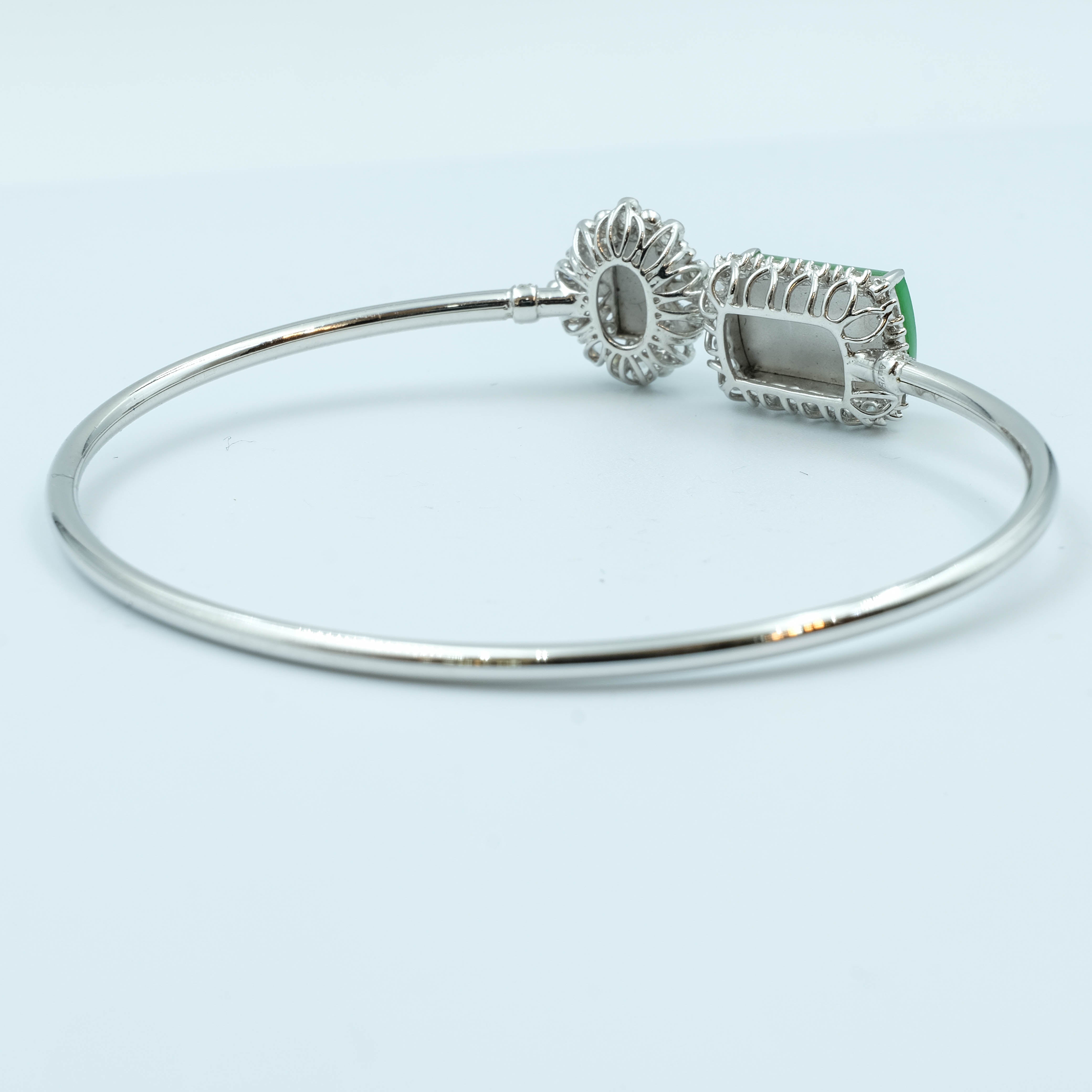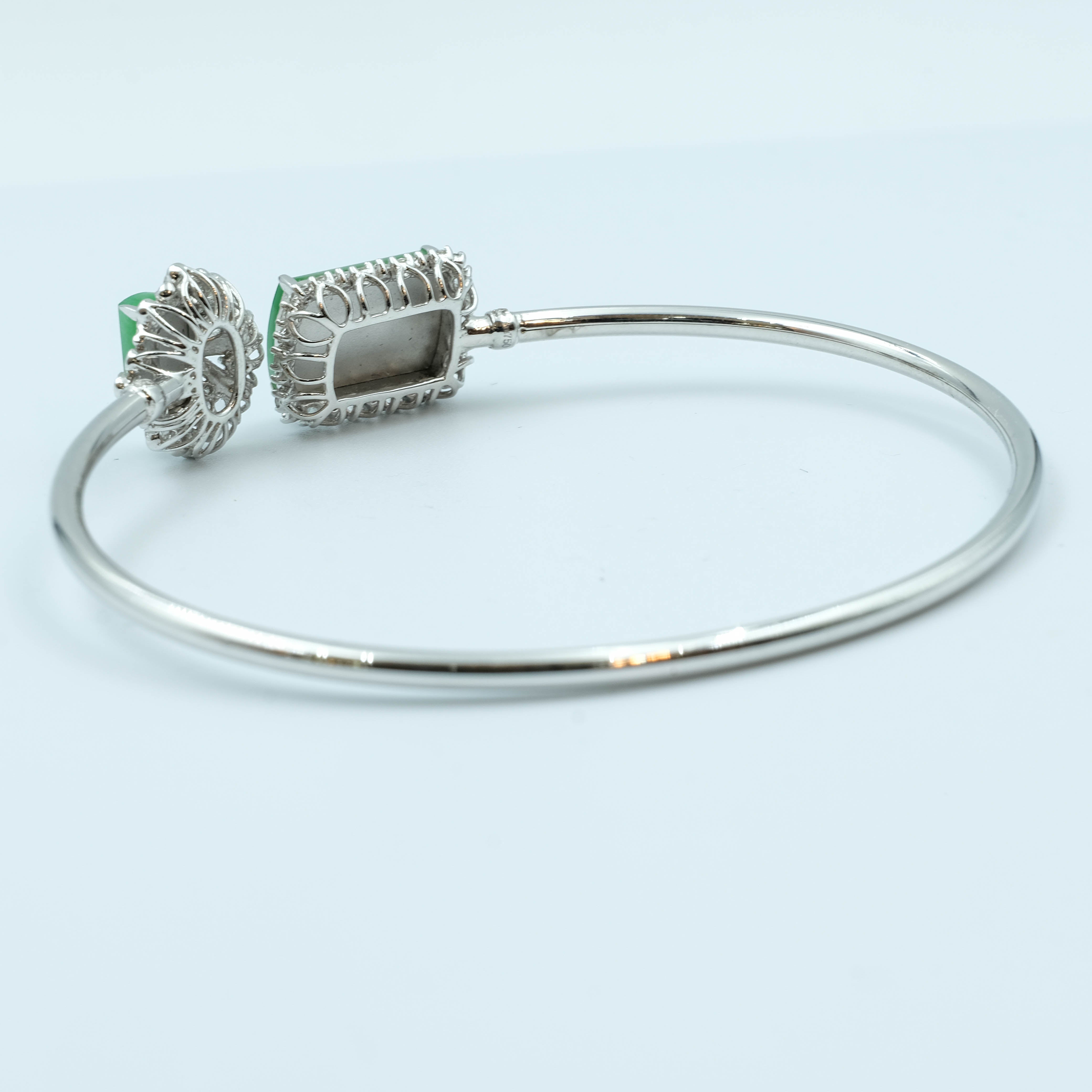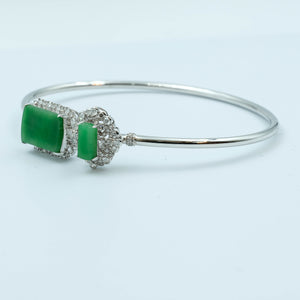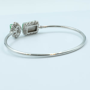 Wu Shi Pai Shape Jadeite Bangle Jade Green 18k White Gold Natural Diamond Inlay