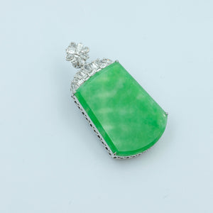 WuShiPai Pendant Jadeite Jade Sweet Green Grade A 18K White Gold Inlay