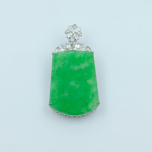 This elegant WuShiPai Pendant features a sweet green Grade A jadeite, set in 18K white gold. The WuShiPai design, symbolizing harmony and balance, makes this pendant a meaningful and timeless addition to any jewelry collection.